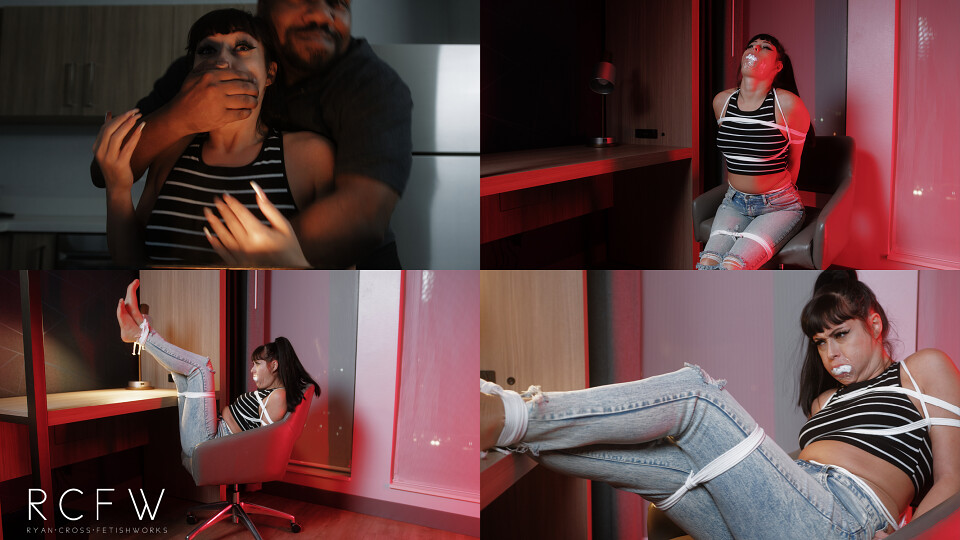 Awesome. I've known Lil Mizz Unique all of 5 minutes and she's already going through my things. It doesn't really matter that it was set up as a lure. I mean if anything that should really emphasis why it's important to ask before touching! She'll have time to think about that as she quickly finds herself trussed up tight with thin rope. She gets her mouth stuffed and taped shut, then she's left to wiggle and moan.