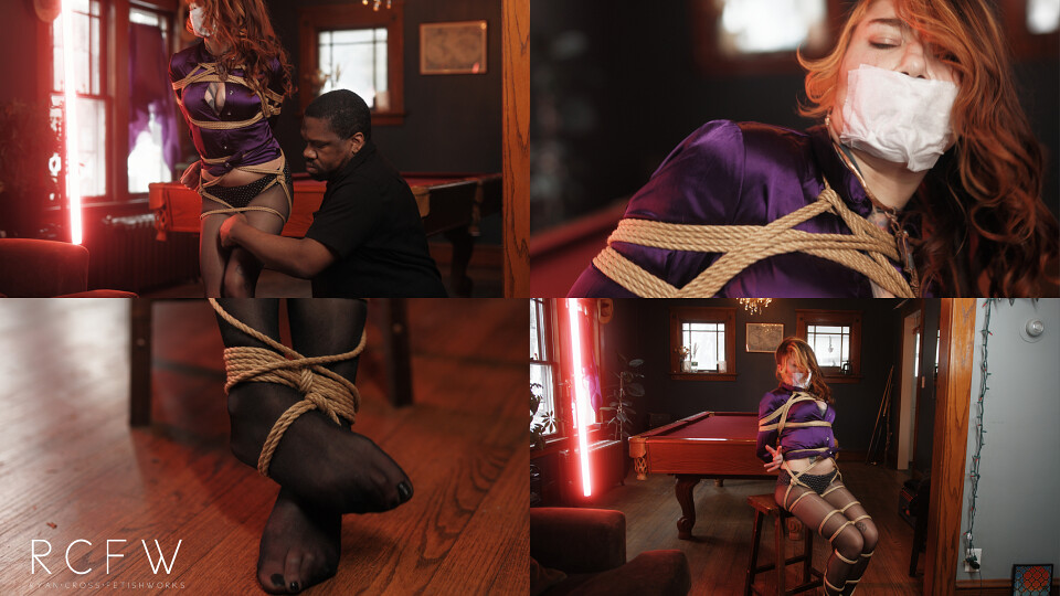 Merci loved this purple blouse. She'd been trying to steal it from me for years. I loved seeing Merci tied up. A deal was made! Although with her struggling I feel like she was trying to renege on her part of our agreement.